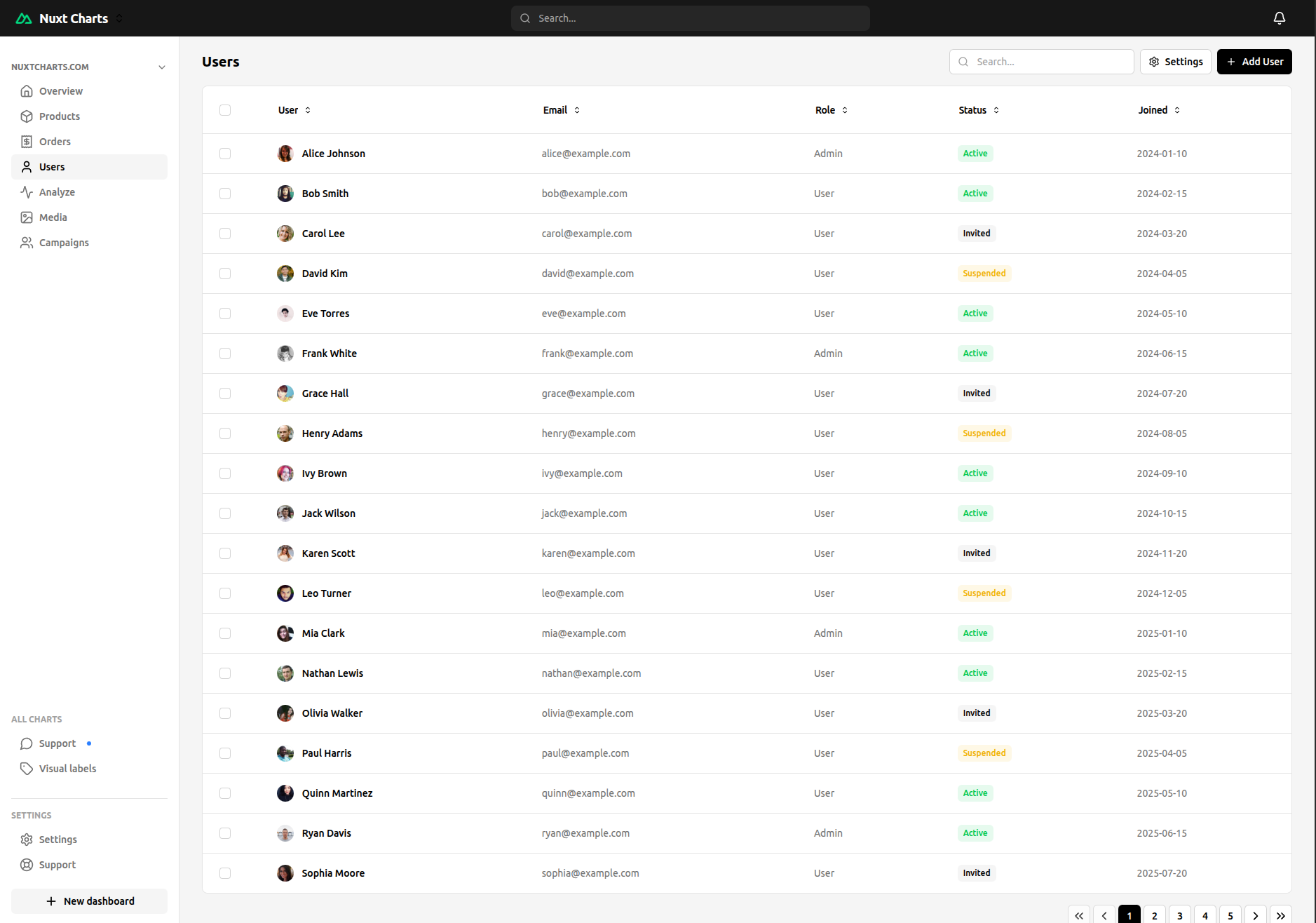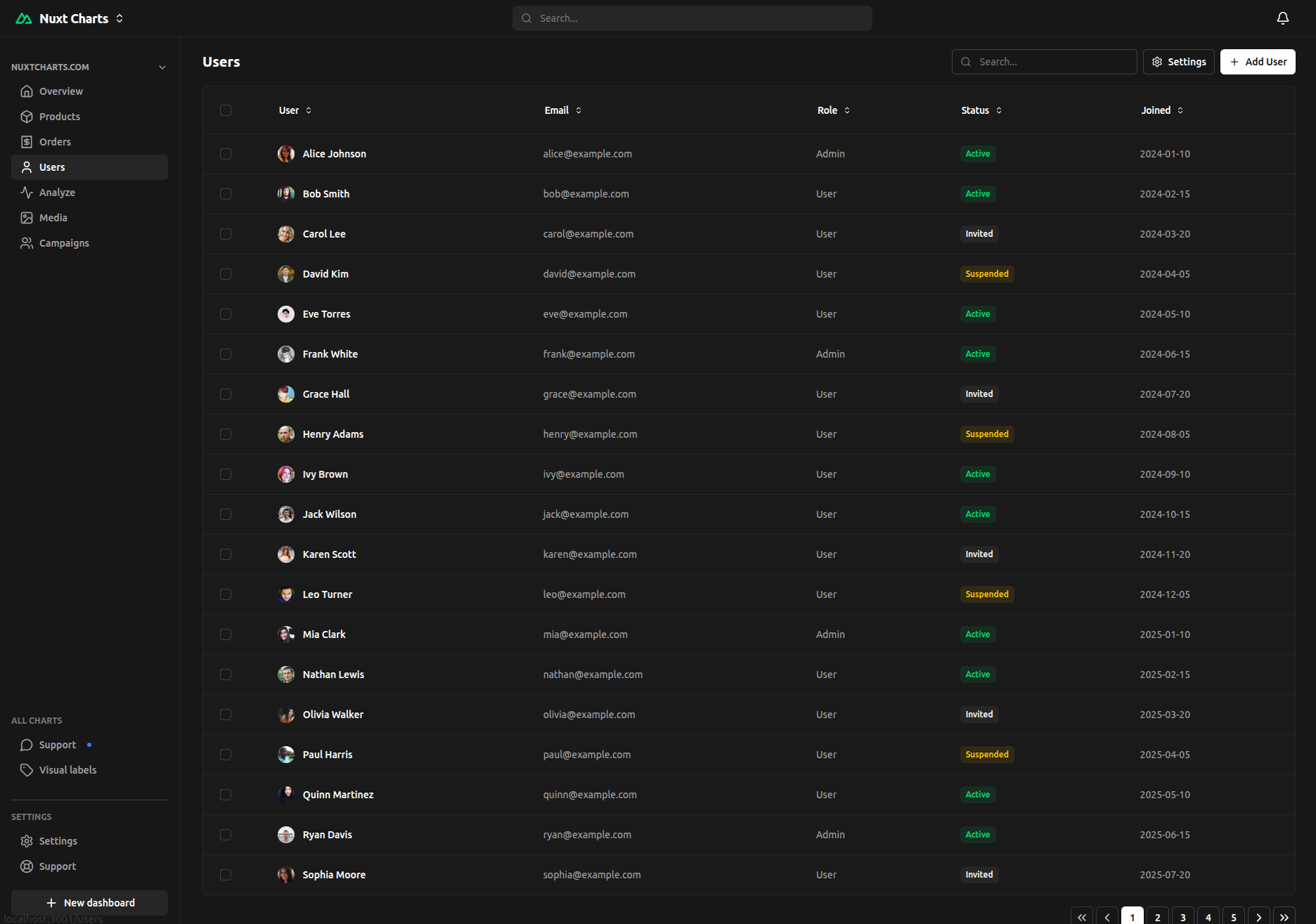The Nuxt charts and dashboards are a breeze to use, it's so easy to implement them into my projects I can spend time on other things because I know I'll always have beautiful components at my disposal!